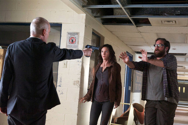 REVOLUTION -- "Everyone Says I Love You" Episode 209 -- Pictured: (l-r) Zeljko Ivanek as Dr. Horn, Jessica Collins as Cynthia, Zak Orth as Aaron Pittman -- (Photo by: Felicia Graham/NBC)