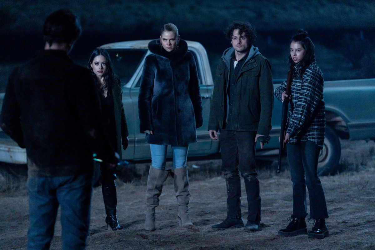 Roswell, New Mexico -- “Goodnight Elizabeth" -- Image Number: ROS307b_738r.jpg -- Pictured (L-R): Jeanine Mason as Liz Ortecho, Lily Cowles as Isobel Evans-Bracken, Michael Vlamis as Michael Guerin, and Amber Midthunder as Rosa Ortecho -- Photo: John Golden Britt/The CW -- © 2021 The CW Network, LLC. All rights reserved.