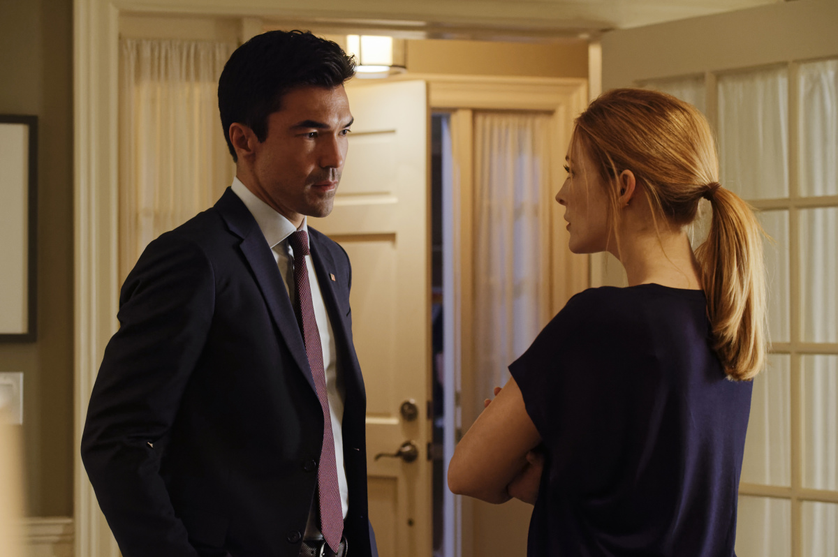 Recurring cast appearing in “All In” includes Erica Luttrell (Claire Rayburn), André Dae Kim (Dylan Edwards), Gregory Calderone (Ed), Raven Dauda (Harris’s Secretary), Josette Jorge (Karissa), Lovina Yavari (Naomi), John Noble (Nicholas Tanz), Autumn Reeser (Theresa / Tess), and Sasha Roiz (President Monroe Bennett). The guest cast list also includes Karen Robinson (Evelyn Cole), Sharon McFarlane (Receptionist), Jesse Griffiths (Tanz Guard), and Mary Ashton (Veronica).