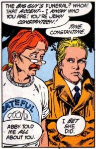 “It was enormously important to me [to have the right pronunciation], because back in 1984-ish when I met Alan Moore for the first time ever a little convention in Britain in Birmingham, I said, ‘I’m loving your new John Constanteen character!’ and he said ‘no, Neil, it’s actually John Constantine.’ I went ‘right!’ and from there on, it was always John Constantine,” Gaiman recalls.