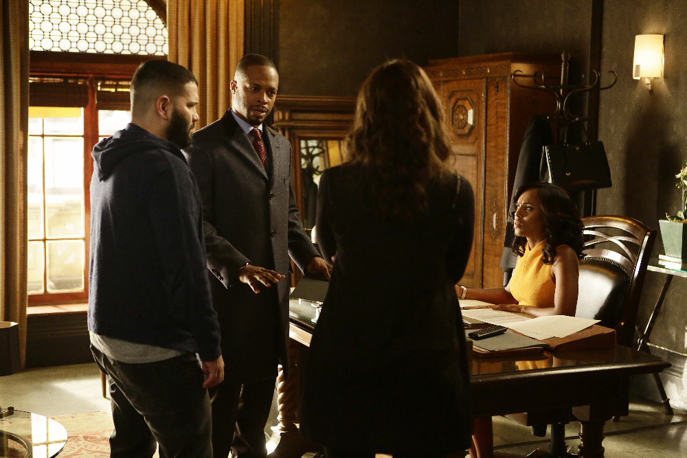 SCANDAL - "The Fish Rots From the Head" - Olivia and the team take on some embattled Secret Service agents. Meanwhile, Abby has her hands full trying to keep Fitz in line, and Jake begins to reveal a few secrets of his own, on an all-new "Scandal," THURSDAY MARCH 10 (9:00-10:00 p.m. EST) on the ABC Television Network. (ABC/Nicole Wilder)GUILLERMO DIAZ, CORNELIUS SMITH JR., KERRY WASHINGTON