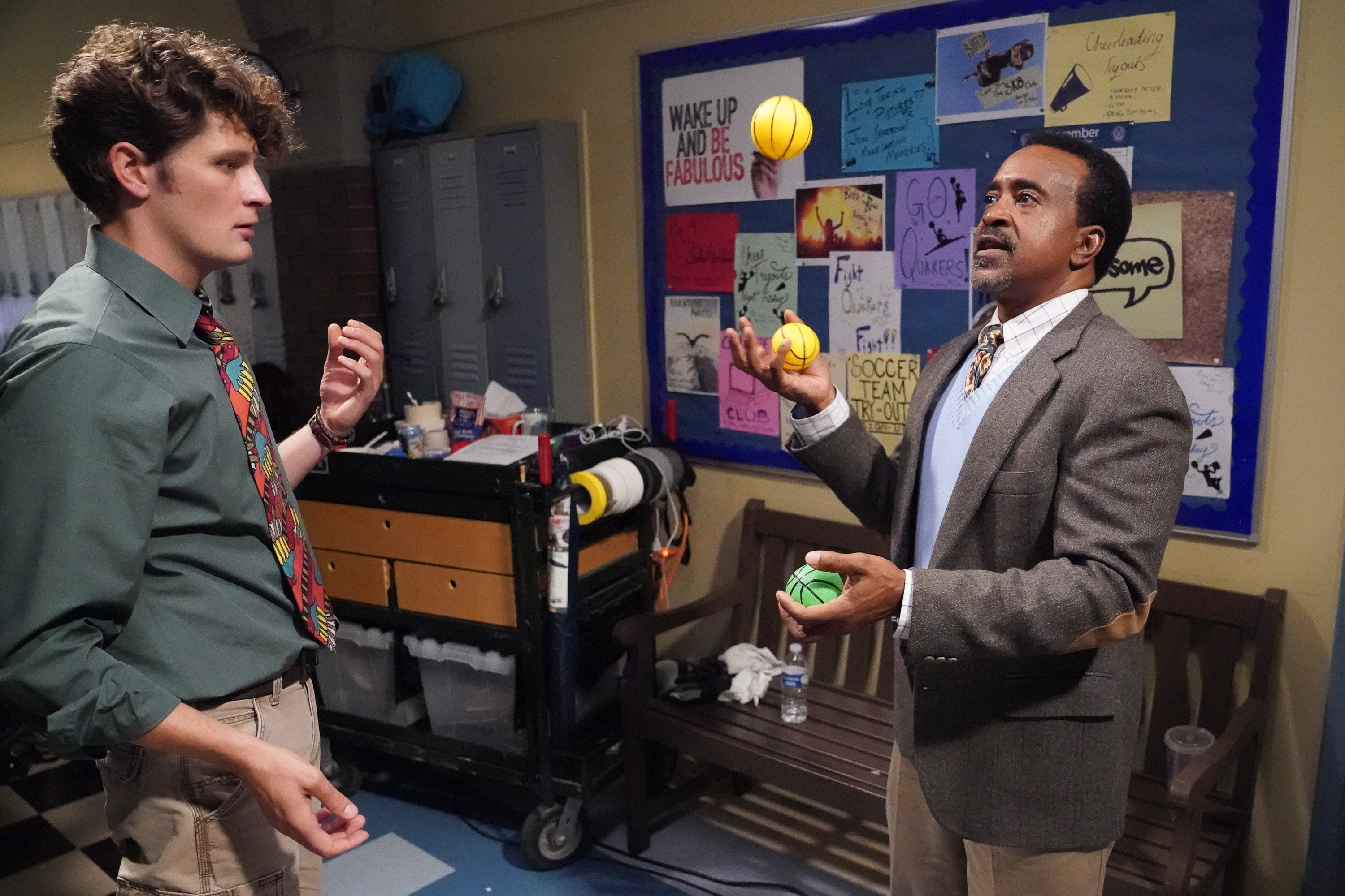 SCHOOLED - "Dangerous Minds" - The summer is over. On her first day back, Lainey is excited to be back at William Penn Academy, but Mellor warns her that being a pal to her students is not a good idea. Meanwhile, Principal Glascott introduces the newest science teacher to the faculty, but CB is skeptical of her no-nonsense approach, on the second season premiere of "Schooled," WEDNESDAY, SEPT. 25 (8:30-9:00 p.m. EDT), on ABC. (ABC/Mitch Haaseth)BRETT DIER, TIM MEADOWS