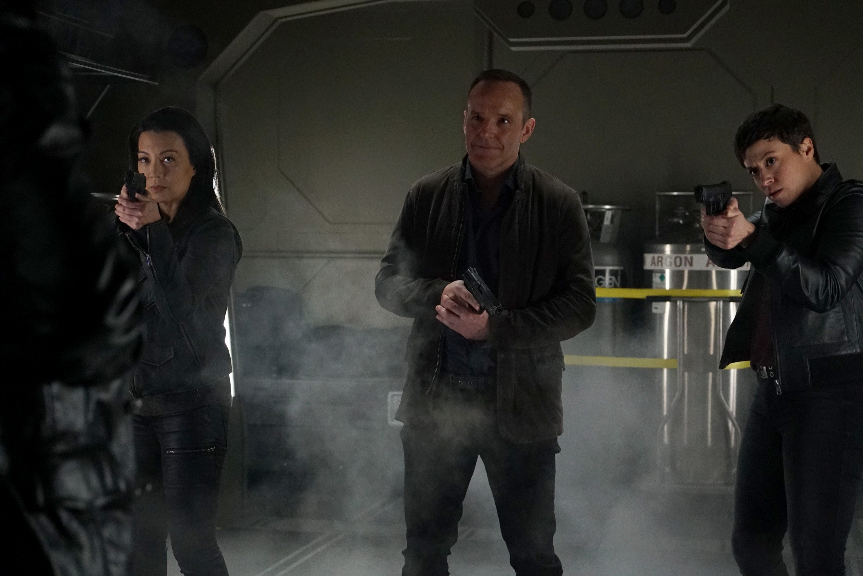 Marvel’s Agents of S.H.I.E.L.D. stars Clark Gregg as Agent Phil Coulson, Ming-Na Wen as Agent Melinda May, Chloe Bennet as Daisy Johnson, Iain De Caestecker as Agent Leo Fitz, Elizabeth Henstridge as Agent Jemma Simmons, Henry Simmons as Agent Alphonso “Mack” MacKenzie and Natalia Cordova-Buckley as Elena “Yo-Yo” Rodriguez.