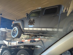 Twitter user Mike Ermalovich got what might be the clearest shot of the S.H.I.E.L.D. vehicle, which we’re assuming will be in the S.H.I.E.L.D. pilot. You can see that to your left; for a larger look, go here.