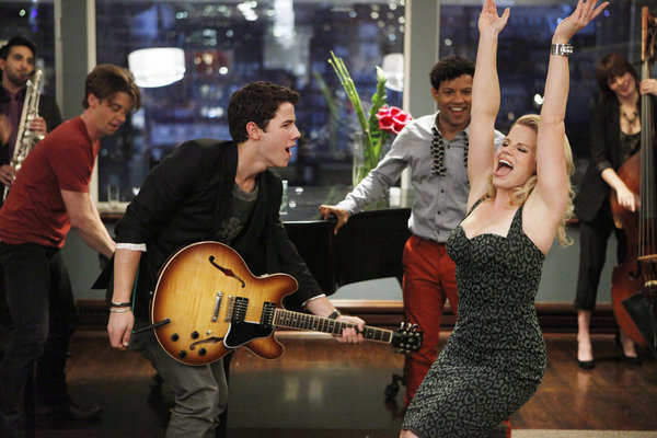 NICK JONAS GUEST STARS – Karen (Katharine McPhee) must learn to advance in the high-stakes world of Broadway, as Derek (Jack Davenport) hosts a party for hot young star Lyle (guest star Nick Jonas). Eileen (Anjelica Huston) tries a sly new strategy for raising funds, while Tom (Christian Borle) goes on a first date. Debra Messing, Megan Hilty, Raza Jaffrey and Jaime Cepero also star.