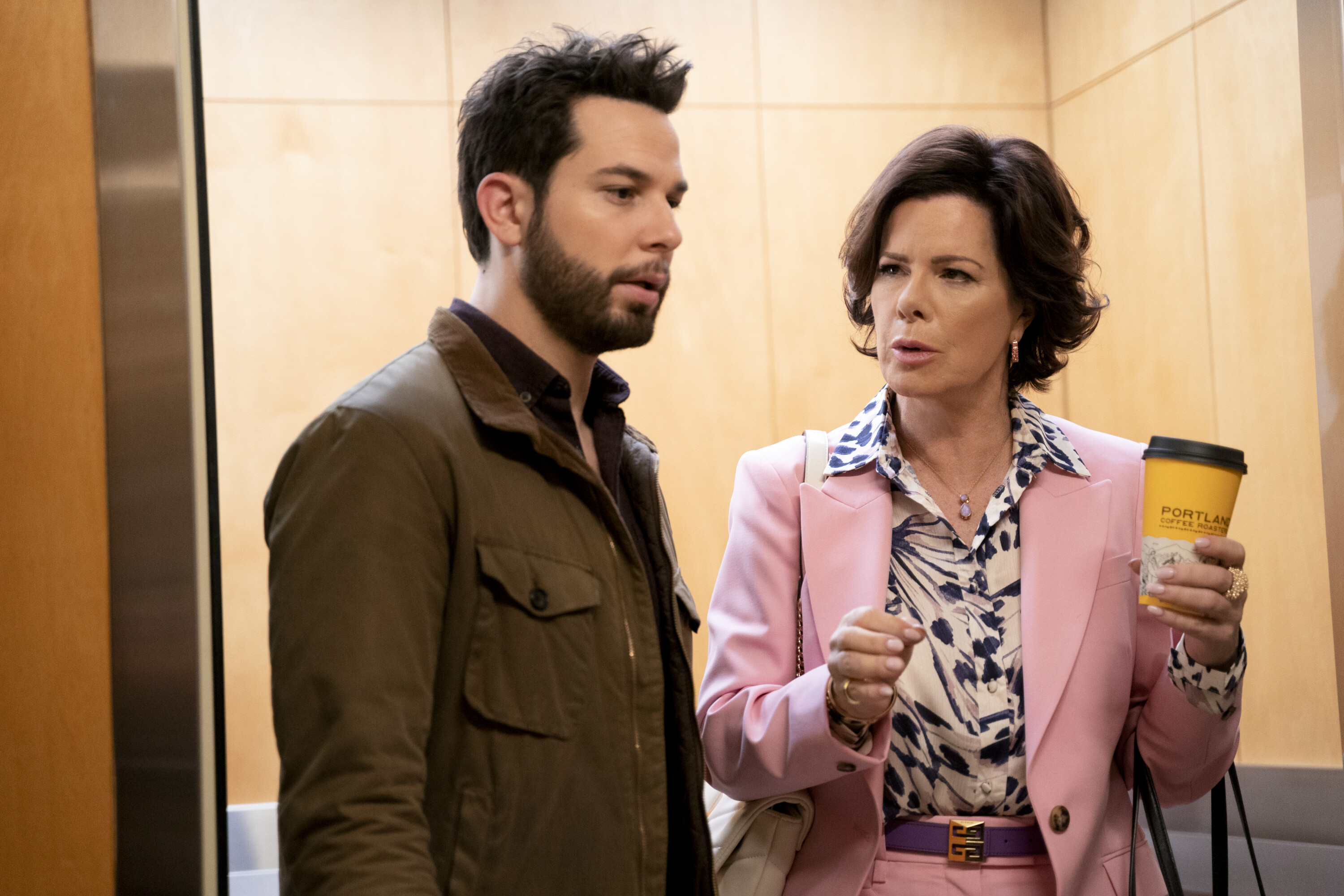 “86’d” – Margaret represents Lauren (Jamie Chung), Susan’s good friend, in a hostile work environment lawsuit after she quits her job at a Michelin-starred restaurant, but it unexpectedly turns into a murder trial when the head chef is found dead. Also, when Todd gets sick, Margaret must go undercover as a dishwasher in a fancy restaurant while Todd acts as a restaurant critic to gather more intel on the possible suspect, on the CBS Original drama SO HELP ME TODD, Thursday, May 4 (9:01-10:00 PM, ET/PT) on the CBS Television Network, and available to stream live and on demand on Paramount+*. Pictured: Skylar Astin as Todd and Marcia Gay Harden as Margaret. Photo: Michael Courtney/CBS ©2023 CBS Broadcasting, Inc. All Rights Reserved.