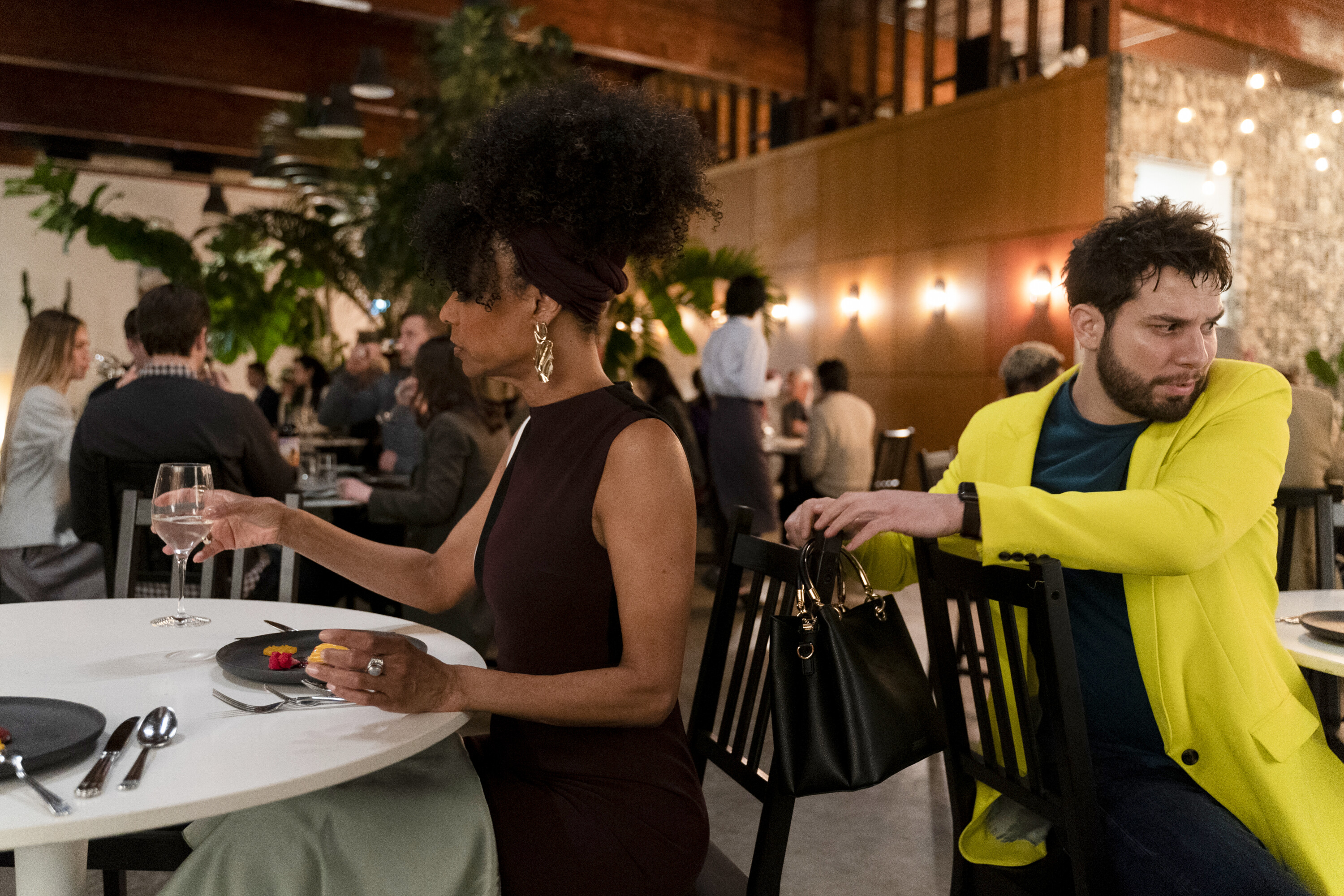 “86’d” – Margaret represents Lauren (Jamie Chung), Susan’s good friend, in a hostile work environment lawsuit after she quits her job at a Michelin-starred restaurant, but it unexpectedly turns into a murder trial when the head chef is found dead. Also, when Todd gets sick, Margaret must go undercover as a dishwasher in a fancy restaurant while Todd acts as a restaurant critic to gather more intel on the possible suspect, on the CBS Original drama SO HELP ME TODD, Thursday, May 4 (9:01-10:00 PM, ET/PT) on the CBS Television Network, and available to stream live and on demand on Paramount+*. Pictured: Leslie Silva as Beverly Crest and Skylar Astin as Todd. Photo: Michael Courtney/CBS ©2023 CBS Broadcasting, Inc. All Rights Reserved.