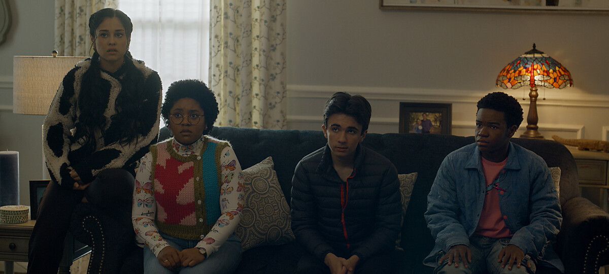 DC’s Stargirl -- “Frenemies - Chapter Ten: The Killer” -- Image Number: STG310g_0217r -- Pictured (L - R): Yvette Monreal as Yolanda Montez / Wildcat, Anjelika Washington as Beth Washington / Dr. Mid-Nite, Trae Romano as Mike Dugan, and Alkoya Brunson as Jakeem -- Photo: The CW -- © 2022 The CW Network, LLC. All Rights Reserved.