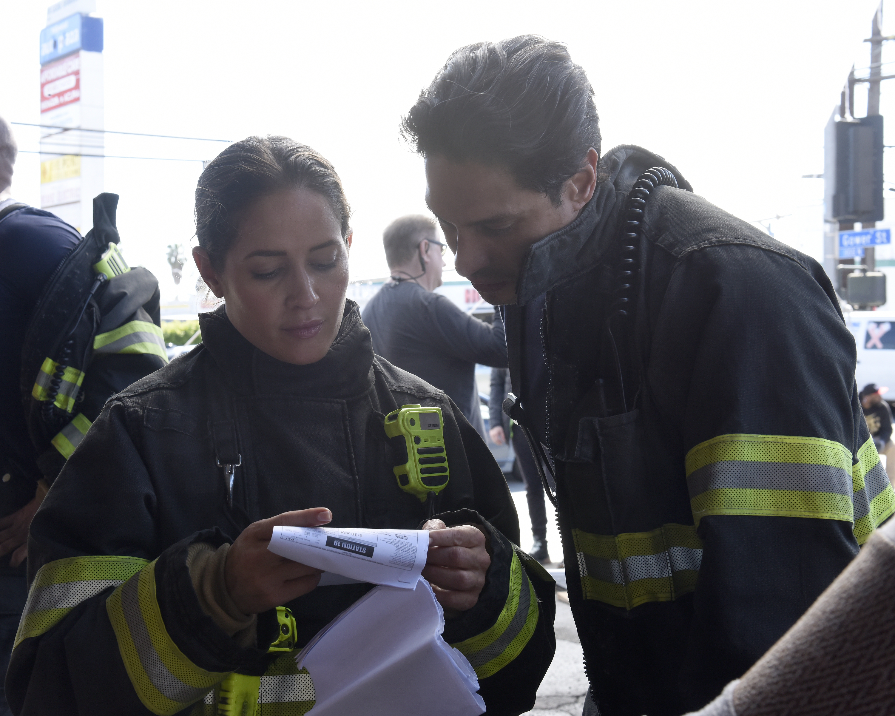 STATION 19 - “All These Things That I’ve Done” - It’s election day at Station 19, with all eyes on the mayoral race. Andy, Theo and Sullivan vie to be named captain, and Vic forges an unexpected bond after going rogue. THURSDAY, MAY 11 (8:00-9:00 p.m. EDT), on ABC. (ABC/Bonnie Osborne) JAINA LEE ORTIZ, CARLOS MIRANDA