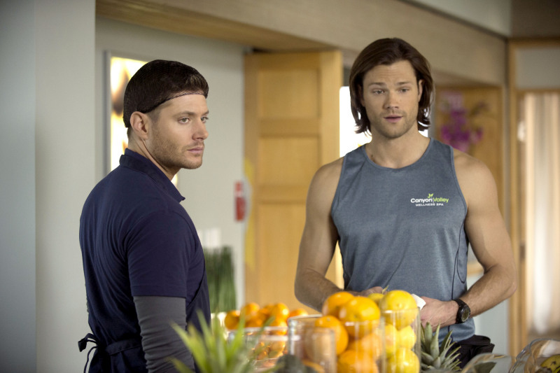 SAM AND DEAN GO UNDERCOVER AT A SPA – Sam (Jared Padalecki) and Dean (Jensen Ackles) investigate recent murders where the victims were hundreds of pounds lighter after their deaths. Suspecting witches, the two go undercover at a fancy day spa that all of the victims had attended for weight loss. While Sam is hired as a fitness instructor, Dean takes kitchen duty. After Dean swipes some tainted food and passes out, the guys realize someone is drugging the guests and literally sucking all of the fat out of them until they die. Phil Sgriccia directed the episode written by Eric Charmelo & Nicole Snyder (912).