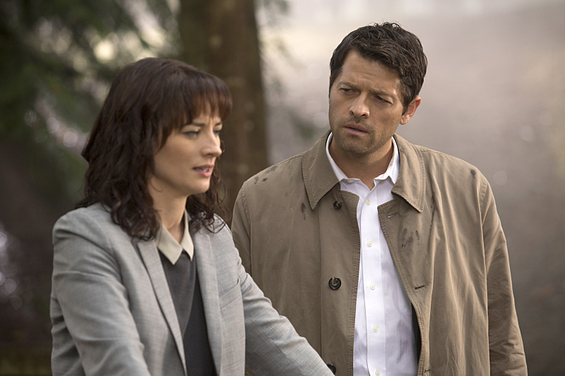 Supernatural -- "Girls, Girls, Girls" -- Image SN1007a_0315 -- Pictured (L-R): Erica Carroll as Hannah and Misha Collins as Castiel -- Credit: Katie Yu/The CW -- © 2014 The CW Network, LLC. All Rights Reserved
