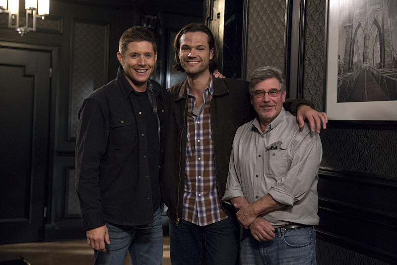 Supernatural -- "Girls, Girls, Girls" -- Image SN1007b_BTS_0112 -- Pictured (L-R): Behind the scenes with Jensen Ackles as Dean, Jared Padalecki as Sam, and Executive Producer and Director, Robert Singer -- Credit: Katie Yu/The CW -- © 2014 The CW Network, LLC. All Rights Reserved