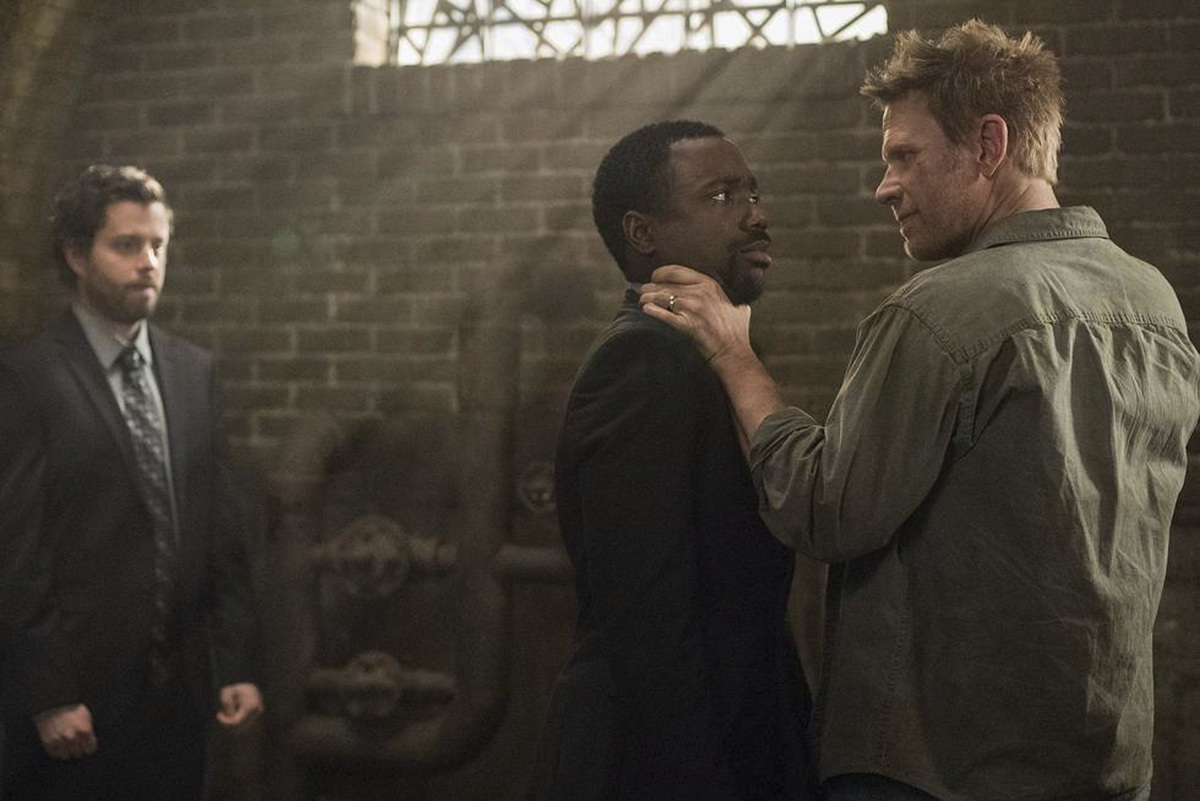 Supernatural --"Somewhere Between Heaven and Hell"-- SN1215a_0303.jpg -- Pictured (L-R): Paul Piakowski as Thomas, Marc Senior as Victor and Mark Pellegrino as Lucifer -- Photo: Dean Buscher/The CW -- © 2017 The CW Network, LLC. All Rights Reserved