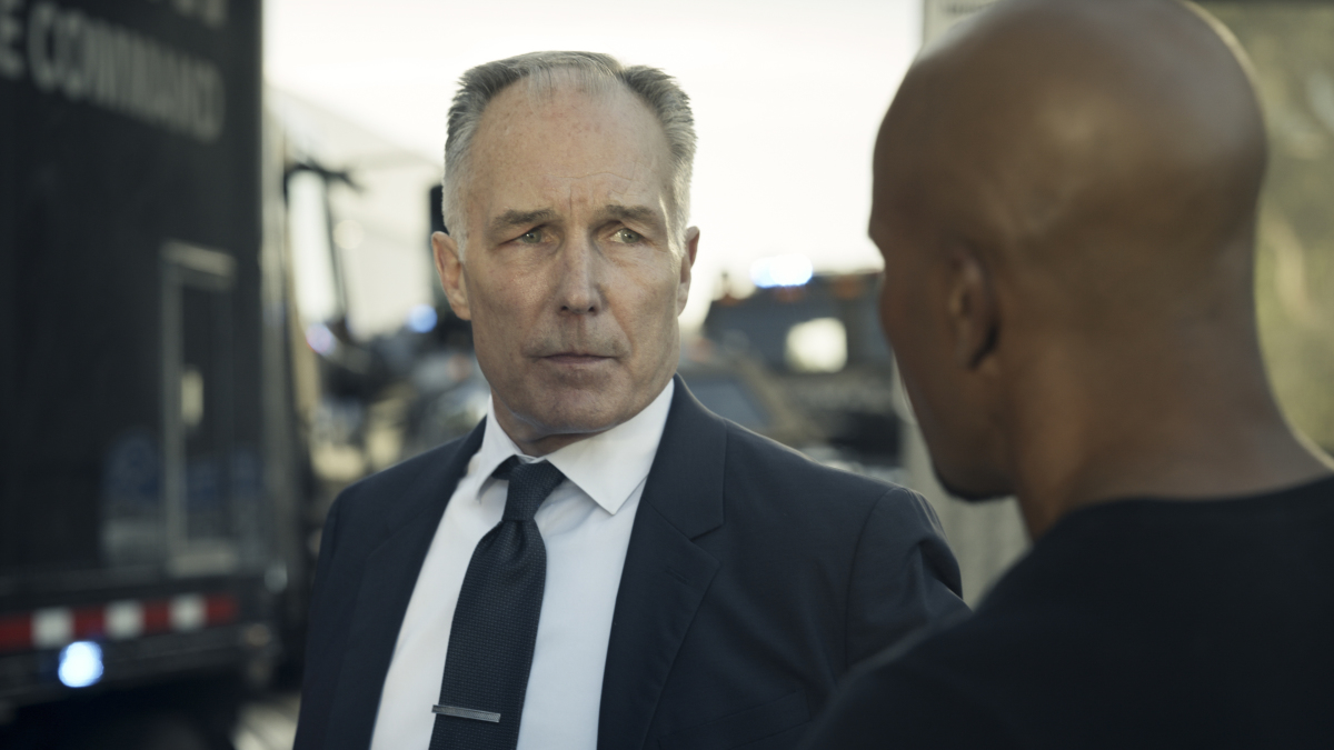 "Veritas Vincit" -- The bombing of a Los Angeles police station puts the city on edge, leading the team to a final showdown with a group of domestic extremists. Also, Hondo faces the fallout from a bold decision that threatens his future, and Tan takes a big step in his personal life, on the fourth season finale of S.W.A.T., Wednesday, May 26 (10:00-11:00 PM, ET/PT) on the CBS Television Network. Pictured (L-R): Patrick St. Esprit as Commander Robert Hicks. Photo: Screengrab/CBS ©2021 CBS Broadcasting, Inc. All Rights Reserved