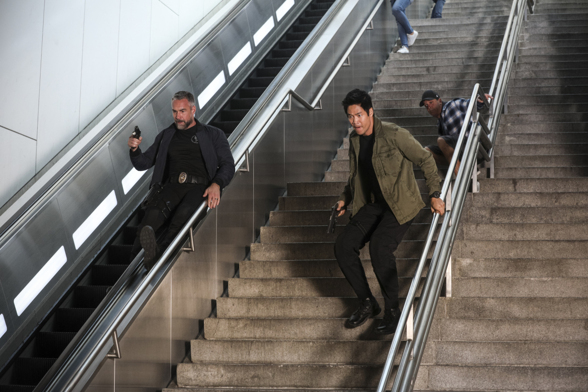 S.W.A.T. stars Shemar Moore (Daniel “Hondo” Harrelson), Alex Russell (Jim Street), Jay Harrington (David “Deacon” Kay), Lina Esco (Christina “Chris” Alonso), Kenny Johnson (Dominique Luca), David Lim (Victor Tan), Patrick St. Esprit (Commander Robert Hicks), and Amy Farrington (Lieutenant Piper Lynch).