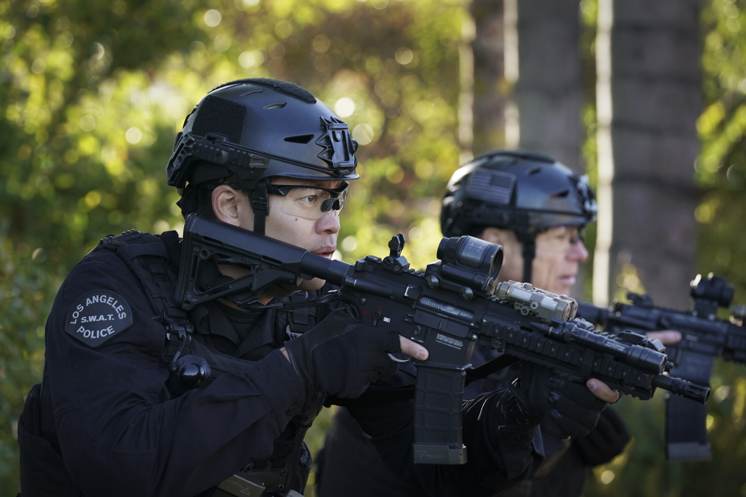 “Lion’s Share” – The SWAT team races to stop a violent rampage with ties to a painful chapter from Hicks’ past, on S.W.A.T., Friday, Feb. 10 (8:00-9:00 PM, ET/PT) on the CBS Television Network and available to stream live and on demand on Paramount+. Pictured (L-R): David Lim as Victor Tan and Otis Gallop as Sergeant Stevens. Photo: Michael Yarish/CBS ©2022 CBS Broadcasting, Inc. All Rights Reserved.