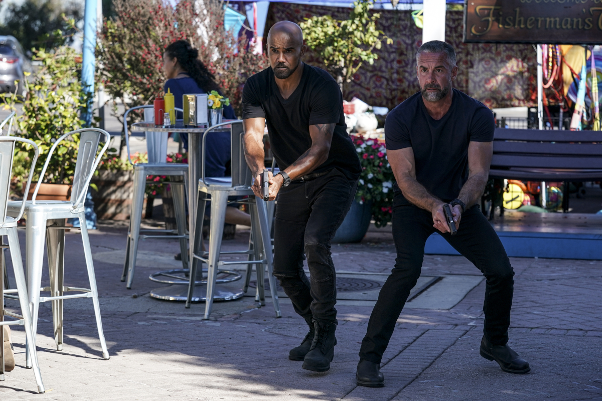S.W.A.T. stars Shemar Moore (Daniel “Hondo” Harrelson), Alex Russell (Jim Street), Jay Harrington (David “Deacon” Kay), Lina Esco (Christina “Chris” Alonso), Kenny Johnson (Dominique Luca), David Lim (Victor Tan), and Patrick St. Esprit (Commander Robert Hicks).