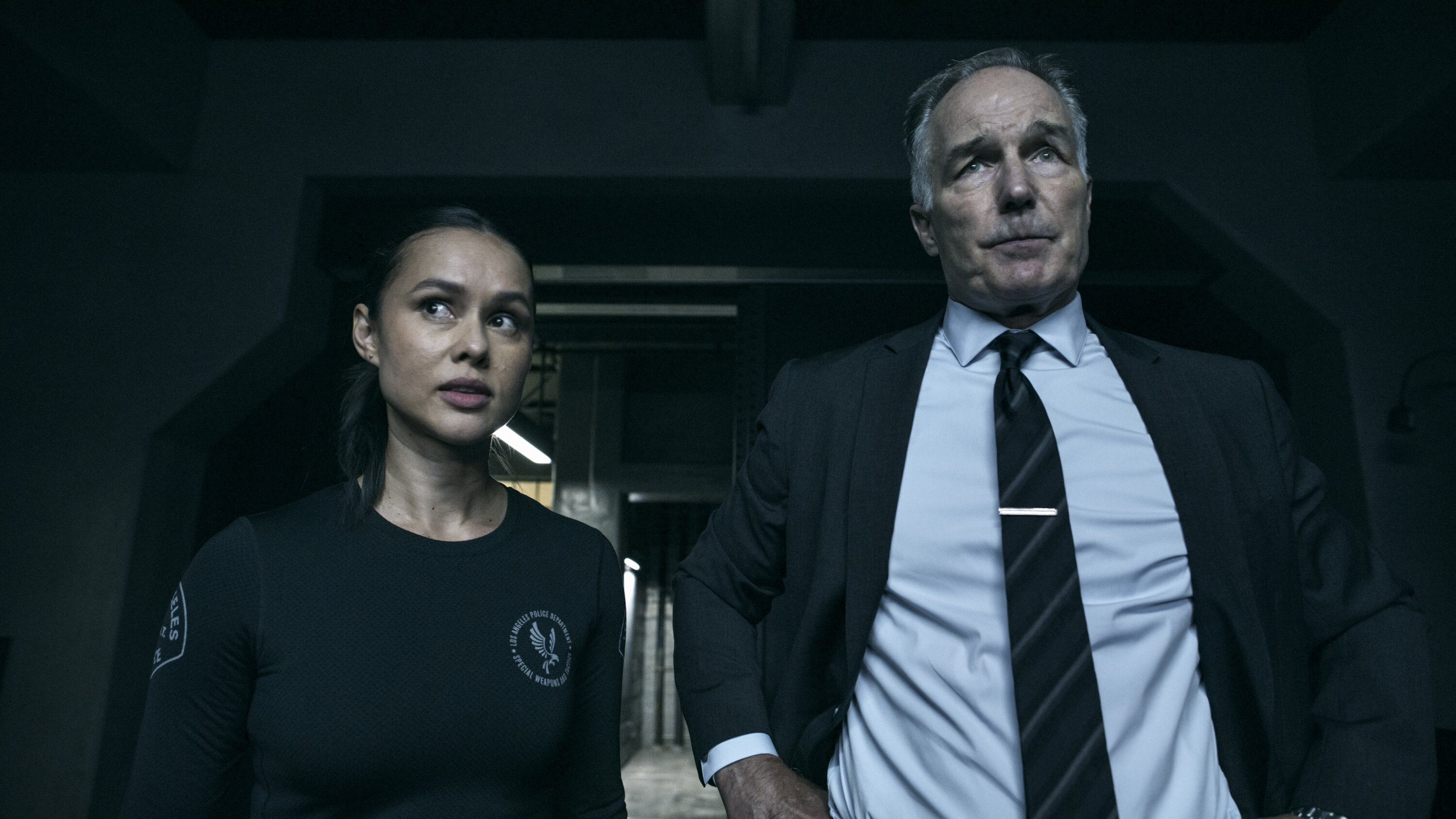 “Thai Another Day” – Hondo, Deacon and Tan team up with Thailand’s elite S.W.A.T. team to stop a ruthless drug lord whose heroin operation has far-reaching ties to Los Angeles, on S.W.A.T., Friday, Oct. 14 (8:00-9:00 PM, ET/PT) on the CBS Television Network and available to stream live and on demand on Paramount+. Pictured (L-R): Anna Enger Ritch as Powell and Patrick St. Esprit as Commander Robert Hicks. Photo: CBS ©2022 CBS Broadcasting, Inc. All Rights Reserved. Highest quality screengrab available.