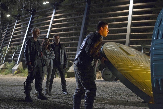 TERRA NOVA: L-R: Taylor (Stephen Lang), Elisabeth (Shelley Conn), Jim (Jason O'Mara) and Reynolds (guest star Dean Geyer) make an important discovery in the two-hour season finale "Occupation/Resistance" episode of TERRA NOVA, airing Monday, Dec. 19 (8:00-10:00 PM ET/PT) on FOX. ©2011 Fox Broadcasting Co. Cr: Brook Rushton/FOX