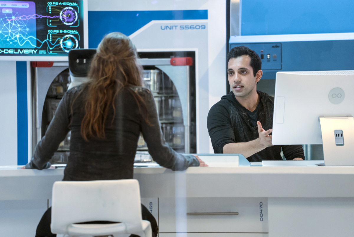 The 100 -- "The Tinder Box" -- Image HU405b_0238 -- Pictured (L-R): Paige Turco as Abby and Sachin Sahel as Jackson -- Credit: Katie Yu/The CW -- © 2017 The CW Network, LLC. All Rights Reserved