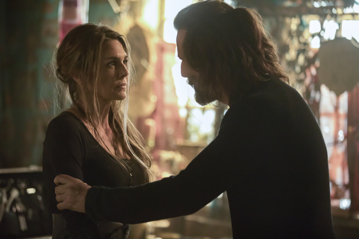 The 100 -- "Acceptable Losses" -- Image Number: HU507a_0240.jpg -- Pictured (L-R): Paige Turco as Abby and Henry Ian Cusick as Kane -- Photo: Jack Rowand/The CW -- © 2018 The CW Network, LLC. All rights reserved.