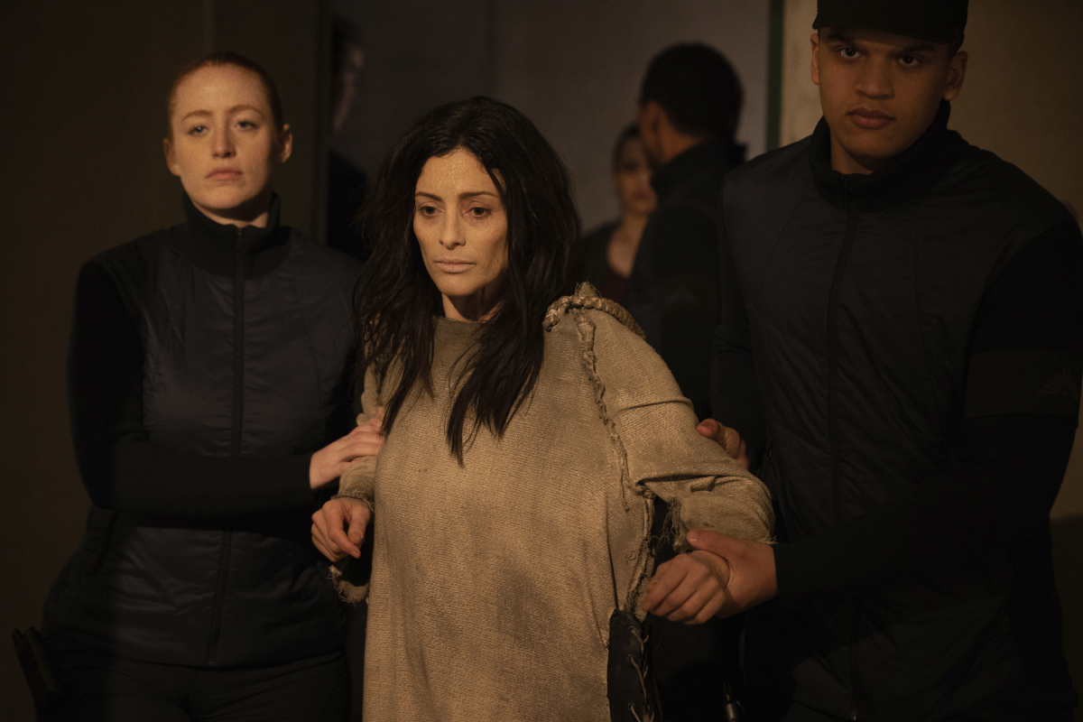 The 100 -- "Anaconda" -- Image Number: HU713b_0449r.jpg -- Pictured (L-R): Adain Bradley as Reese, Iola Evans as Callie and Crystal Balint as Gemma -- Photo: Jack Rowand/The CW -- 2020 The CW Network, LLC. All rights reserved.
