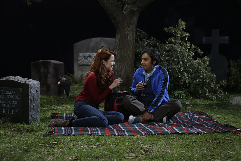"The Commitment Determination" -- Sheldon pushes Leonard and Penny to choose a date for their wedding and deals with dramatic changes in his own relationship with Amy, on THE BIG BANG THEORY, Thursday, May 7 (8:00-8:31 PM, ET/PT), on the CBS Television Network. Pictured left to right: Laura Spencer and Kunal Nayyar Photo: Sonja Flemming/CBS é2015 CBS Broadcasting, Inc. All Rights Reserved