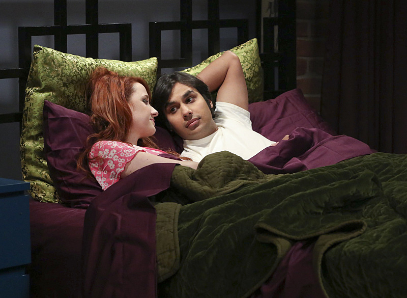 "The Colonization Application" -- Raj (Kunal Nayyar, right) is caught snooping in Emily's (Laura Spencer, left) apartment, on THE BIG BANG THEORY, Thursday, March. 5 (8:00-8:31 PM, ET/PT), on the CBS Television Network. Photo: Michael Yarish/Warner Bros. Entertainment Inc. é 2015 WBEI. All rights reserved.