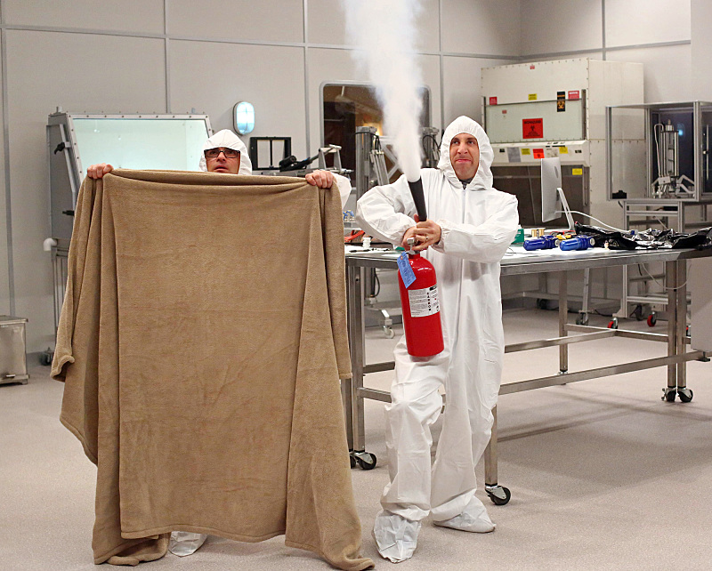 "The Clean Room Infiltration" -- Leonard (Johnny Galecki, left) and Wolowitz (Simon Helberg, right) nearly come to blows and turn to Raj for help in dealing with a work emergency, on THE BIG BANG THEORY, Thursday, Dec. 11 (8:00-8:31 PM, ET/PT), on the CBS Television Network. Photo: Michael Ansell/Warner Bros. Entertainment Inc. é 2014 WBEI. All rights reserved.