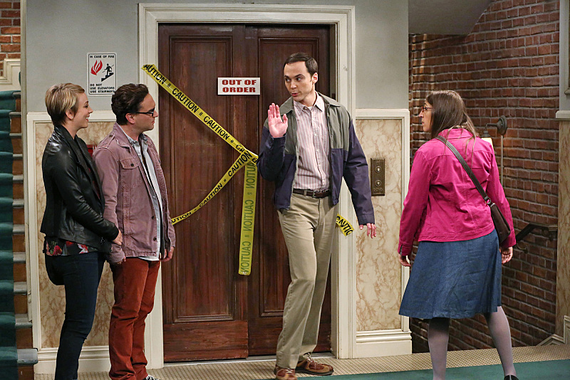 "The First Pitch Insufficiency" -- Leonard and Penny try to prove Sheldon wrong after he says that he and Amy are a "superior couple," on THE BIG BANG THEORY, Monday, Sept. 29, 2014 (8:00-8:31, ET/PT), on the CBS Television Network. Pictured left to right: Kaley Cuoco-Sweeting, Johnny Galecki, Jim Parsons and Mayim Bialik Photo: Michael Yarish/Warner Bros. Entertainment Inc. © 2014 WBEI. All rights reserved.