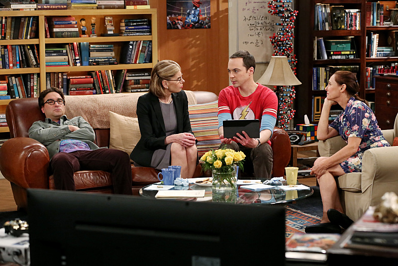"The Maternal Combustion" -- Personalities collide when Sheldon and Leonard's mothers finally meet, on THE BIG BANG THEORY, Thursday, April 30 (8:00-8:31 PM, ET/PT), on the CBS Television Network. Pictured left to right: Johnny Galecki, Christine Baranski, Jim Parsons and Laurie Metcalf Photo: Michael Yarish/Warner Bros. Entertainment Inc. é 2015 WBEI. All rights reserved.