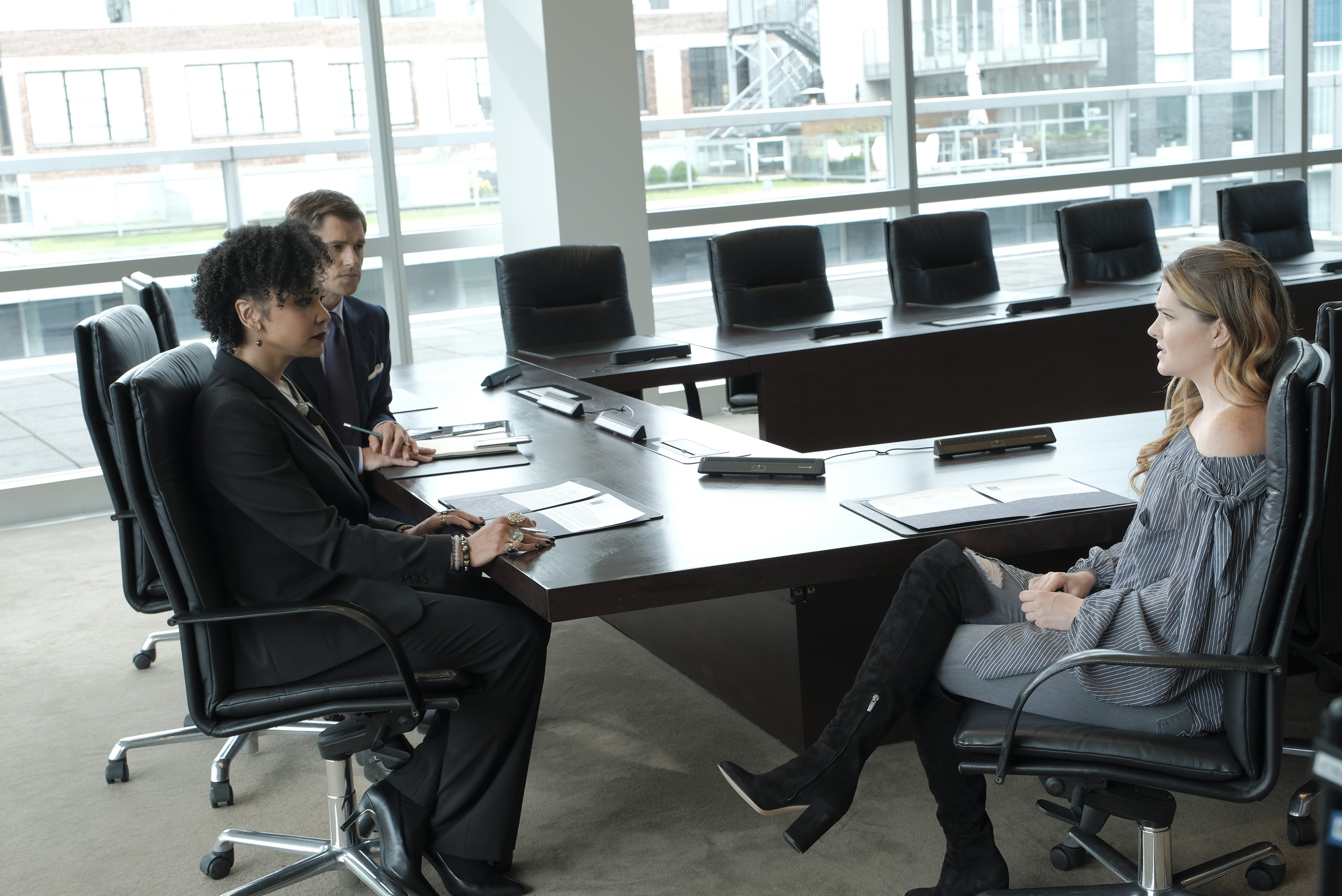 THE BOLD TYPE - "Before Tequila Sunrise" - Jane, Sutton, Alex, Pinstripe and Jacqueline are all trapped in the Scarlet offices due to a massive traffic jam. Forced to spend time together, Jane reexamines her feelings for Pinstripe. Sutton makes a surprising move. And when she learns Adena is leaving New York, Kat makes an impulsive decision. This episode of "The Bold Type" airs Tuesday, August 29 (9:01 - 10:02 p.m. EDT) on Freeform. (Freeform/Phillippe Bosse)TAMARA BROWN, SAM PAGE, MEGHANN FAHY