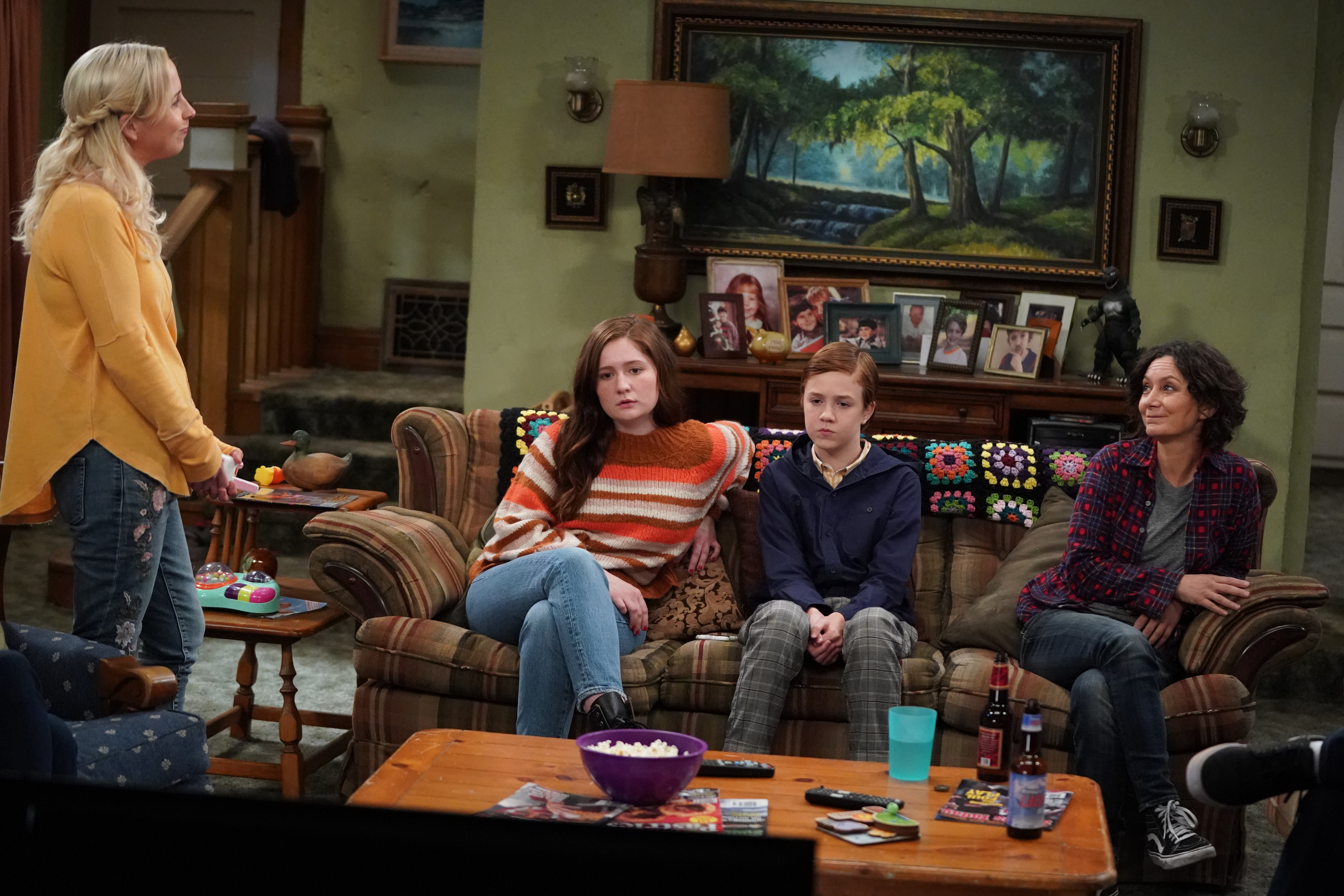 THE CONNERS - “Protest, Drug Test and One Leaves the Nest” – Harris’ job is in jeopardy after joining a protest she strongly believes in, leading to tense discussions within the family. Jackie makes a visit to Wellman Plastics only to realize the company is instituting supervised drug testing, inspiring Becky to lead her own protest on an all-new episode of “The Conners,” WEDNESDAY, DEC. 2 (9:00-9:30 p.m. EST), on ABC. (ABC/Eric McCandless)LECY GORANSON, EMMA KENNEY, AMES MCNAMARA, SARA GILBERT