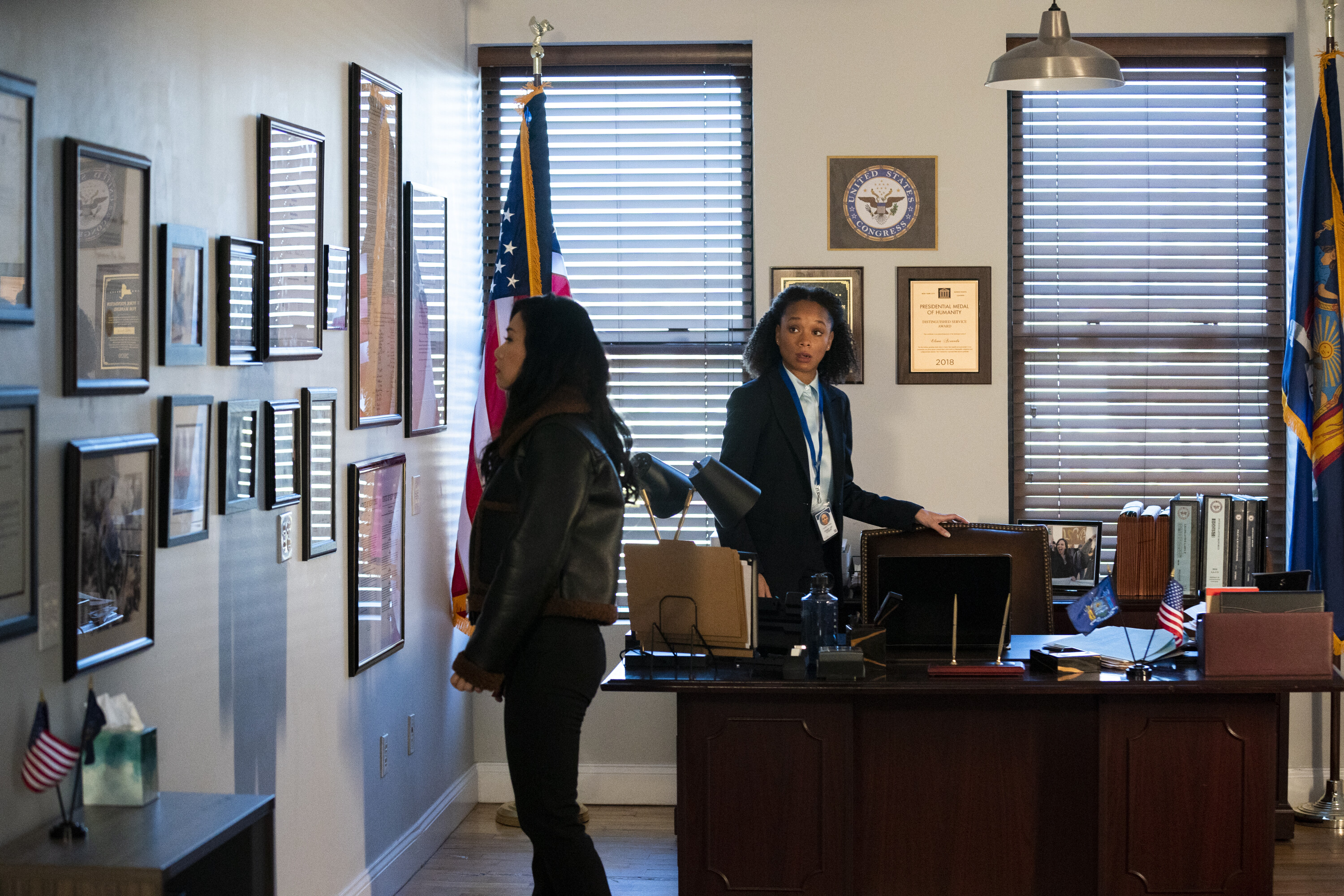 “No Good Deed” – When a Venezuelan migrant is accused of murdering a prominent congresswoman whom he and his wife were staying with, McCall and the team work to uncover whether or not he was involved. Meanwhile, Aunt Vi tries to look after a student who seems to be experiencing distress at home, on the CBS Original series THE EQUALIZER, Sunday, April 16 (8:00-9:00 PM, ET/PT) on the CBS Television Network, and available to stream live and on demand on Paramount+. Pictured (L-R): Liza Lapira as Melody “Mel” Bayani and Talia Robinson as Lacey Young. Photo: Michael Greenberg/CBS ©2023 CBS Broadcasting, Inc. All Rights Reserved.
