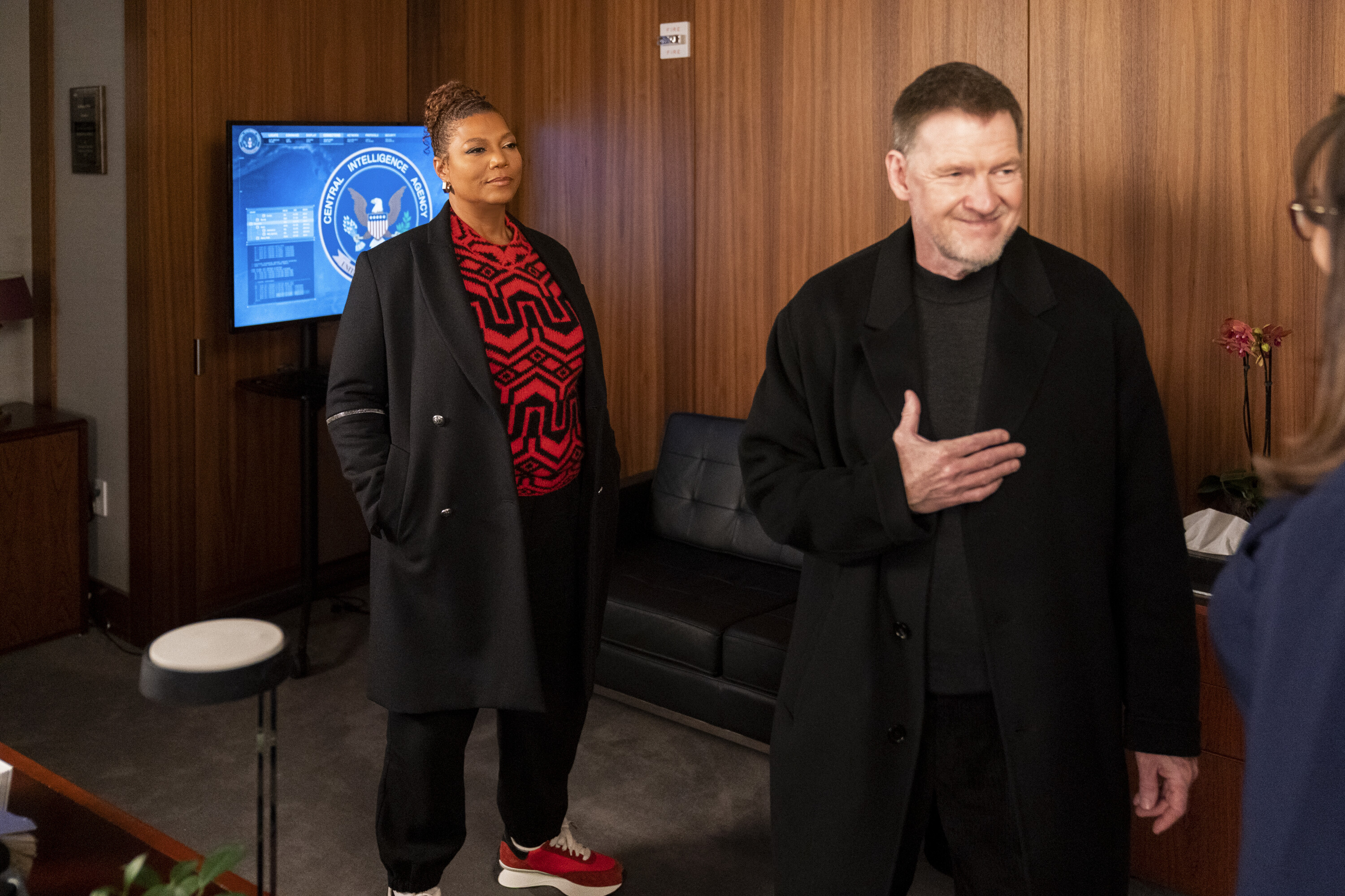 “Patriot Game” – After an operative kills all but one of the employees at a marine biology research group, McCall and the team join forces with Colton Fisk when they discover a connection between the murders and a secret CIA program he was involved in, on the CBS Original series THE EQUALIZER, Sunday, March 26 (8:00-9:00 PM, ET/PT) on the CBS Television Network, and available to stream live and on demand on Paramount+*. Donal Logue guest stars as Colton Fisk. Pictured (L-R): Queen Latifah as Robyn McCall and Donal Logue as Colton Fisk. Photo: Michael Greenberg/CBS ©2023 CBS Broadcasting, Inc. All Rights Reserved.