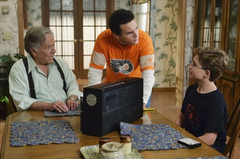 THE GOLDBERGS - "Love is a Mixtape" - After spending the summer apart with Dana and unsure of their relationship, Adam makes a mixtape to express his feelings... only to have it intercepted by Beverly who thinks it's meant for her! Adam must carefully navigate not hurting Beverly's feelings as his relationship with Dana progresses. Meanwhile, Barry gets a fake ID, but after showing it off to the entire school, it's confiscated, and Barry needs to make good on some promises he made to his classmates, on the season premiere of "The Goldbergs," WEDNESDAY, SEPTEMBER 24 (8:30-9:00 p.m., ET) on the ABC Television Network. (ABC/Eric McCandless) GEORGE SEGAL, TROY GENTILE, SEAN GIAMBRONE