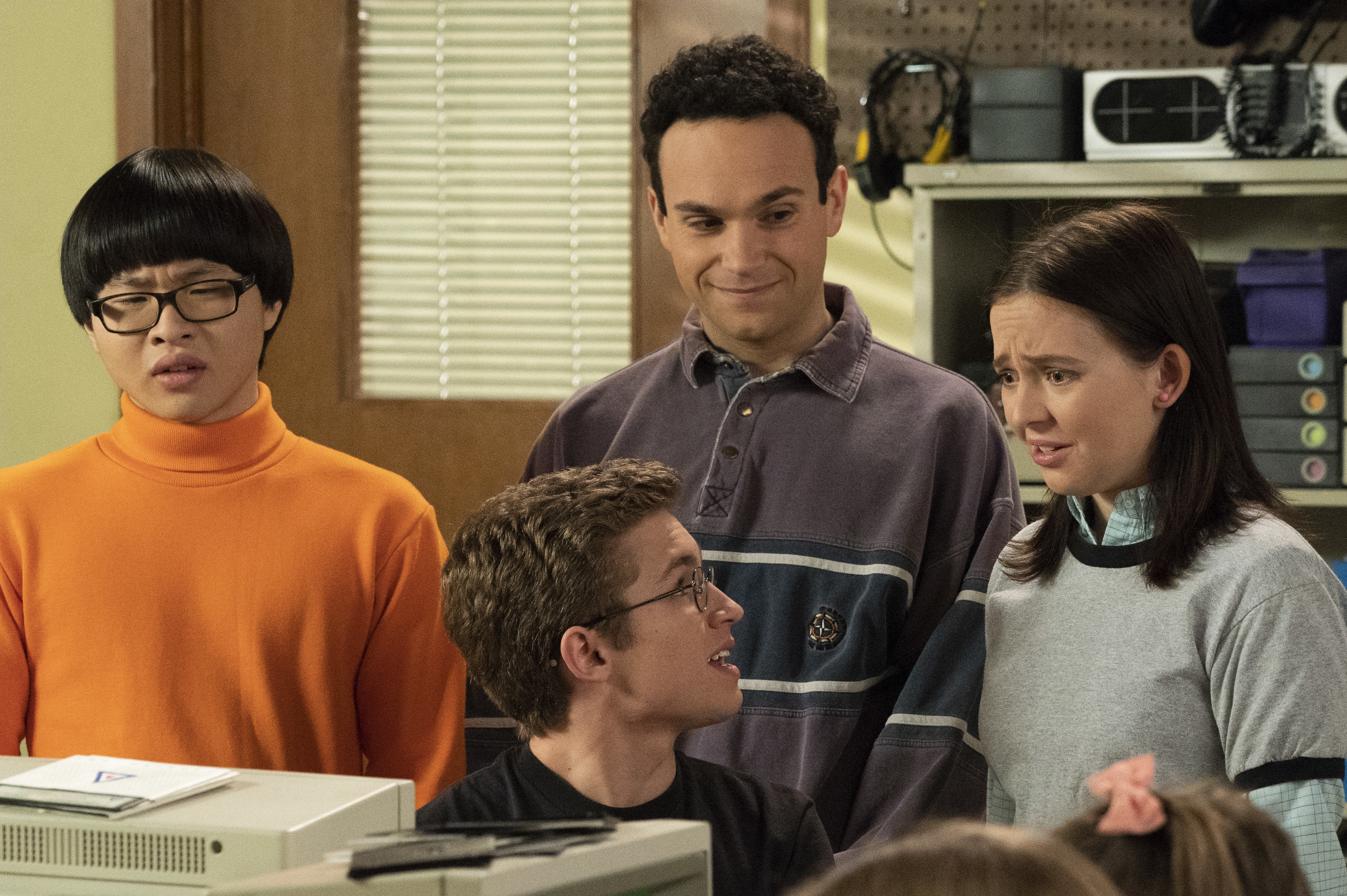 THE GOLDBERGS - "8-Bit Goldbergs" - Adam is thrilled when he has to design his own video game for school, so he turns to his family for inspiration. Meanwhile, Beverly is worried about Pops' gambling and ropes Bill Lewis into her latest scheme on an all-new episode of "The Goldbergs," airing WEDNESDAY, MARCH 20 (8:00-8:30 p.m. EDT), on The ABC Television Network. (ABC/Richard Cartwright)KENNY RIDWAN, SEAN GIAMBRONE, TROY GENTILE, ALEXIS G. HALL