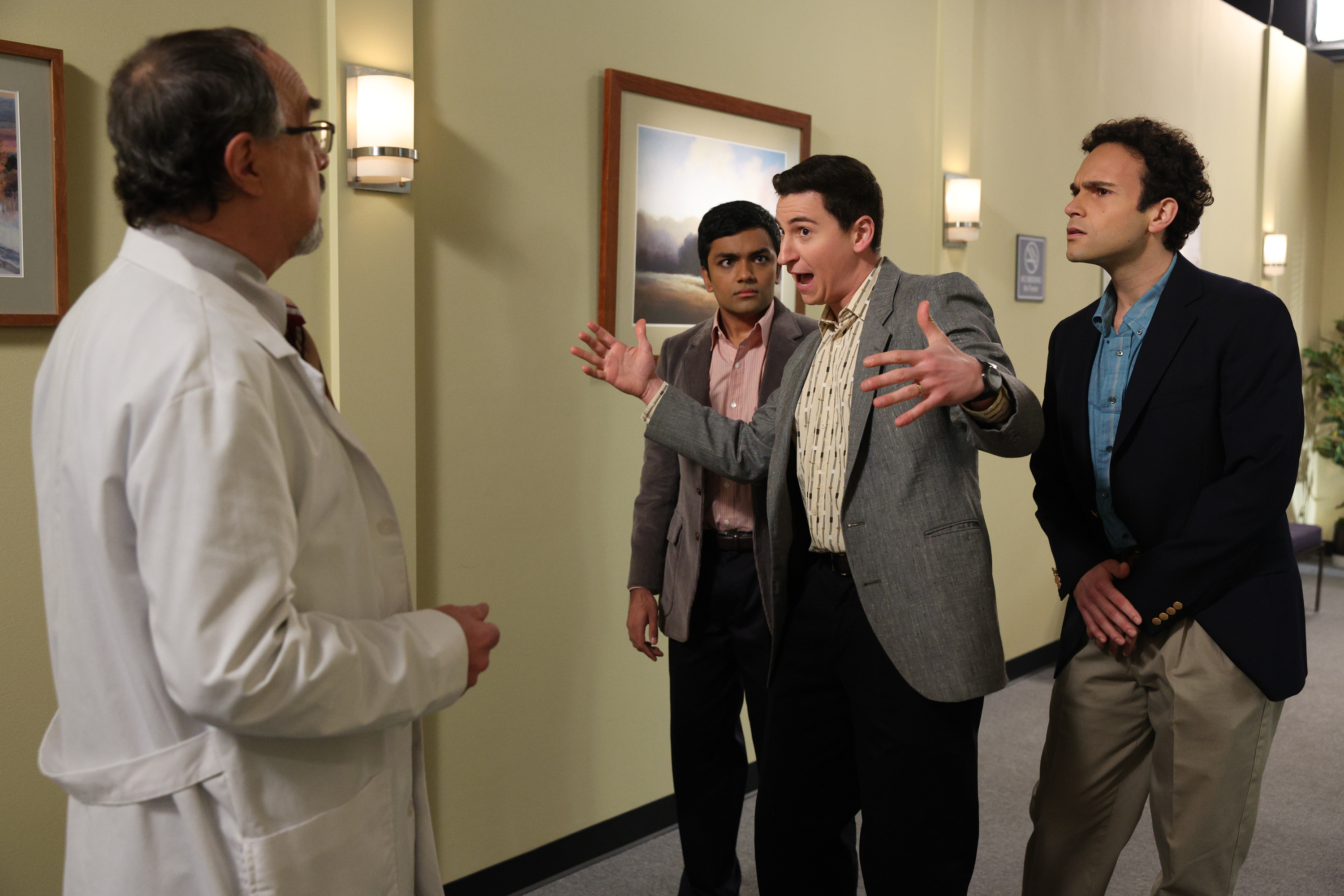 THE GOLDBERGS - “School-ercise” – When Beverly steps in for PE coach at William Penn Academy, Adam reluctantly takes her Jazzercise class. He is surprised to find enjoyment in it, until Beverly suffers an embarrassing incident – causing Adam the ultimate humiliation. Brea steps in to show Adam his mother’s good intentions and he ultimately comes to her defense. Meanwhile, Barry and Geoff find themselves both up for the same medical internship – causing conflict in their budding friendship on an all-new episode of The Goldbergs,” airing WEDNESDAY, APRIL 13 (8:00-8:30 p.m. EDT), on ABC. (ABC/Raymond Liu) SURAJ PARTHA, SAM LERNER, TROY GENTILE