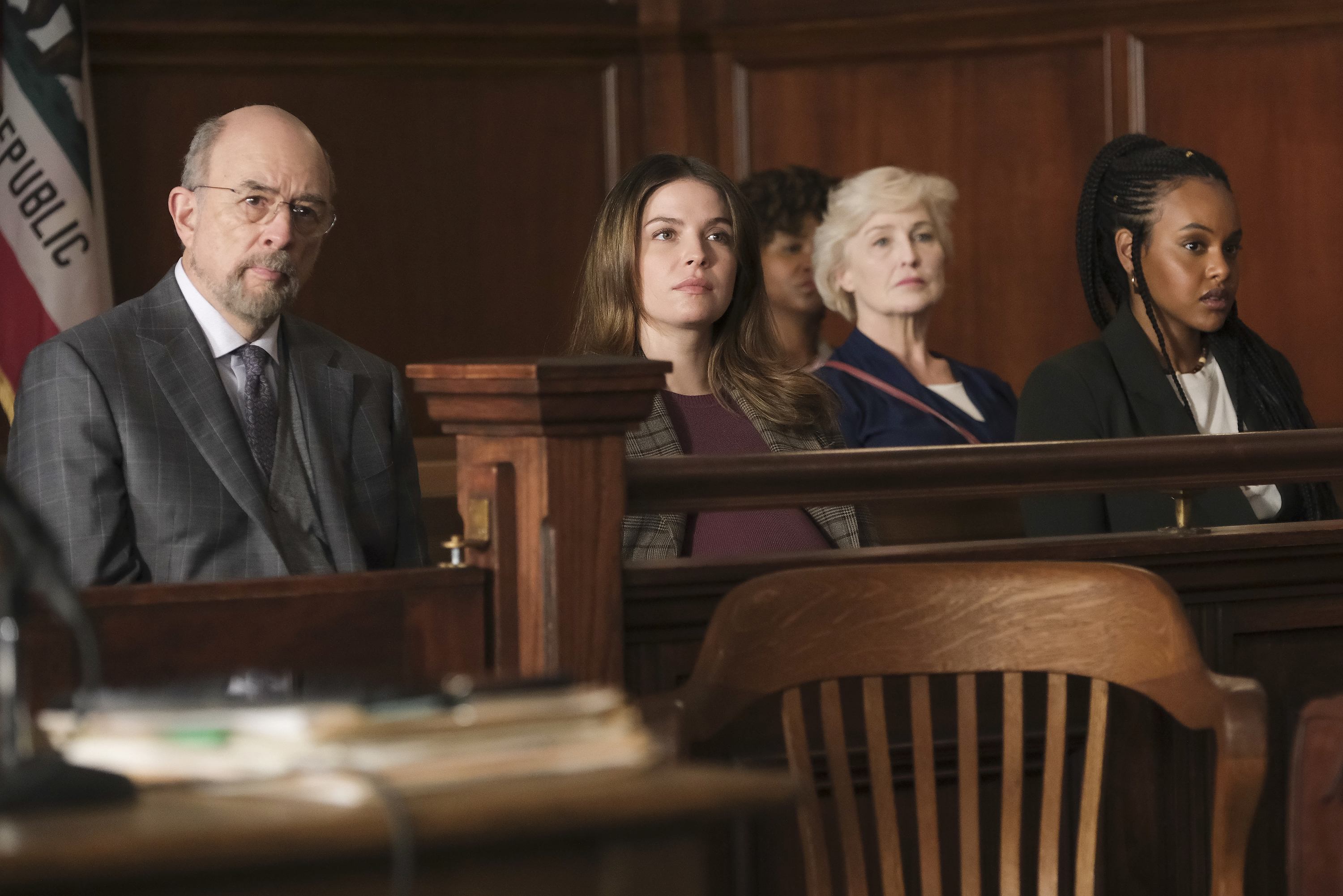Emmy® Award-winning Felicity Huffman also guest stars as Janet Stewart, a highly regarded attorney and partner at the law firm with a fierce intellect and dry wit. A seasoned veteran, Janet has represented Dr. Aaron Glassman (Richard Schiff) in several legal matters over the years, so he turns to her to represent his beloved protégé. But when Shaun declares that he wants Joni to represent him, Janet is forced to let Joni take lead on the case. You can see some photos forom “The Good Lawyer” below.