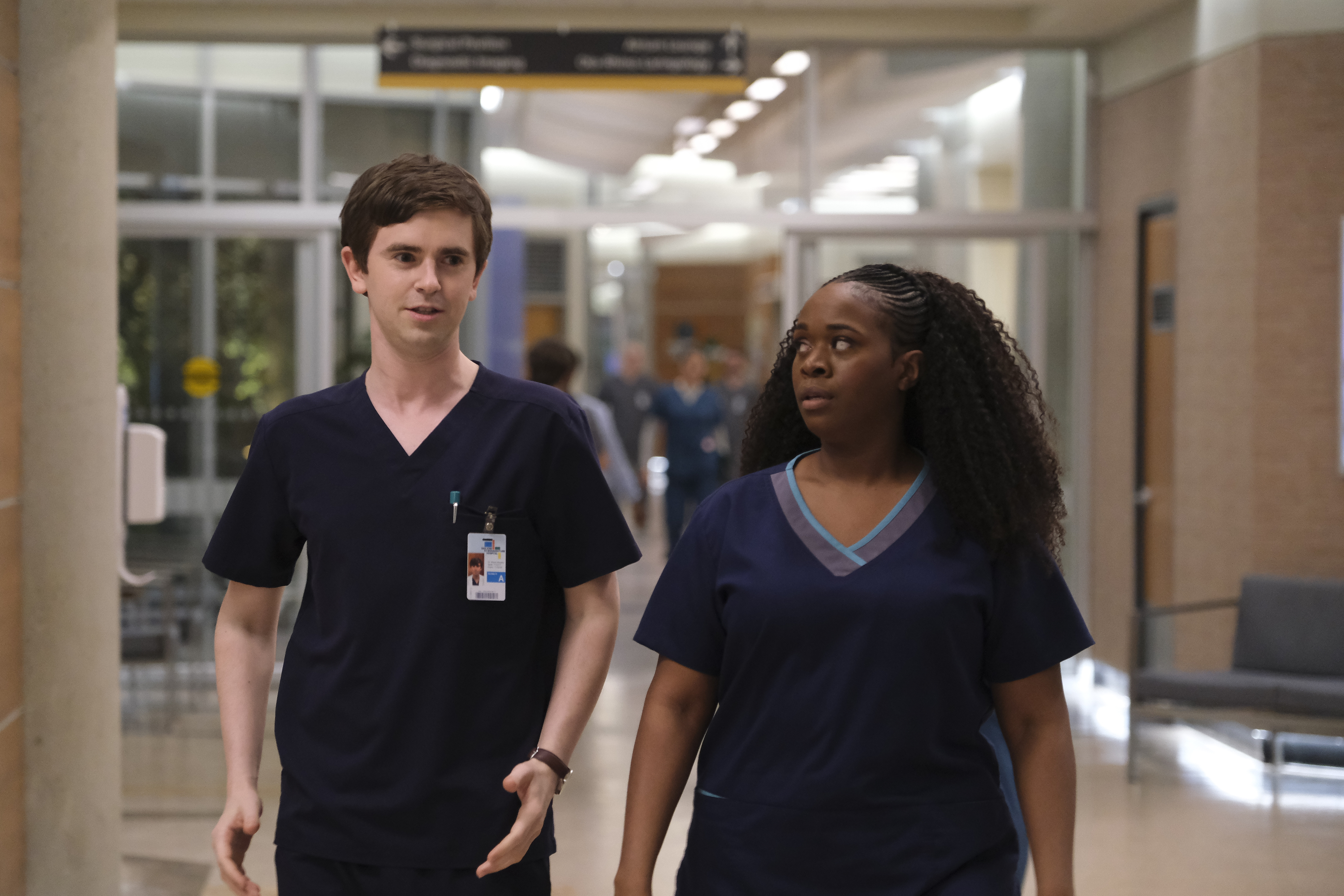 THE GOOD DOCTOR - “Potluck” – When someone mistakenly brings a hallucinogen-laced dish to the hospital’s company potluck, much of the hospital staff and doctors are incapacitated — leaving doctors Murphy, Glassman and Allen forced to take on all the hospital’s cases, further exacerbating Dr. Murphy and Dr. Glassman’s conflicting work styles on an all-new “The Good Doctor,” MONDAY, APRIL 11 (10:01-11:00 p.m. EDT), on ABC. (ABC/Jeff Weddell) FREDDIE HIGHMORE, BRIA HENDERSON