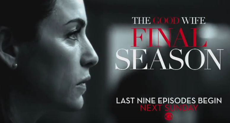 The final nine episodes of The Good Wife are set to begin next Sunday, February 14, with an episode called “Monday.” The series finale will air on May 8. You can see the Super Bowl promo below.