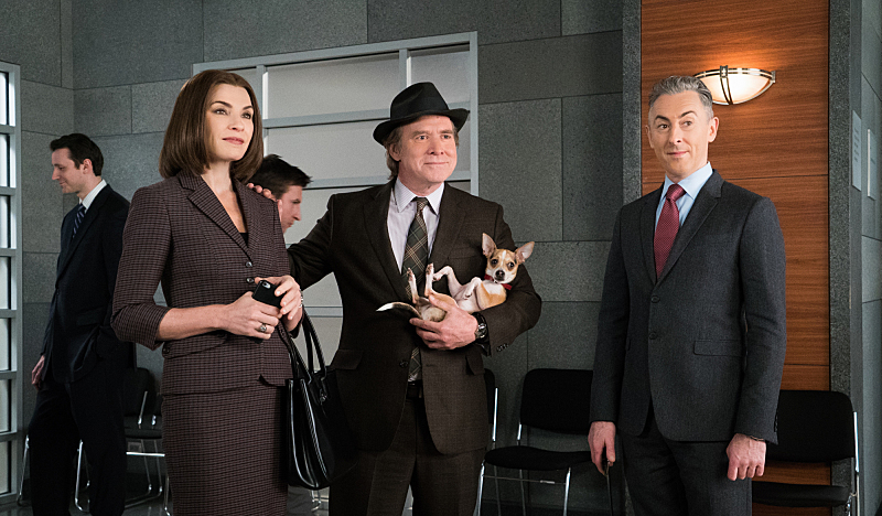 "Hearing" -- As the grand jury against Peter Florrick is assembled, with Assistant U.S. Attorney Connor Fox (Matthew Morrison) leading the proceedings, Alicia, Eli and Peter's lawyer, Mike Tascioni (Will Patton), attempt to discover what charges are being leveled against him. Also, Alicia and Jason attempt to spend a quiet weekend together but are interrupted by her meddling family, on THE GOOD WIFE, Sunday, March 6 (9:00-10:00 PM, ET/PT) on the CBS Television Network. Pictured (L-R) Julianna Margulies as Alicia Florrick, Will Patton as Attorney Mike Tascioni and Alan Cumming as Eli Gold Photo David M. Russell é 2016 CBS BROADCASTING INC. ALL RIGHTS RESERVED.