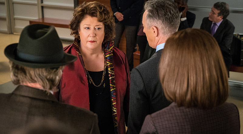 "Hearing" -- As the grand jury against Peter Florrick is assembled, with Assistant U.S. Attorney Connor Fox (Matthew Morrison) leading the proceedings, Alicia, Eli and Peter's lawyer, Mike Tascioni (Will Patton), attempt to discover what charges are being leveled against him. Also, Alicia and Jason attempt to spend a quiet weekend together but are interrupted by her meddling family, on THE GOOD WIFE, Sunday, March 6 (9:00-10:00 PM, ET/PT) on the CBS Television Network. Pictured Margo Martindale as Ruth Eastman and Alan Cumming as Eli Gold Photo David M. Russell é 2016 CBS BROADCASTING INC. ALL RIGHTS RESERVED.