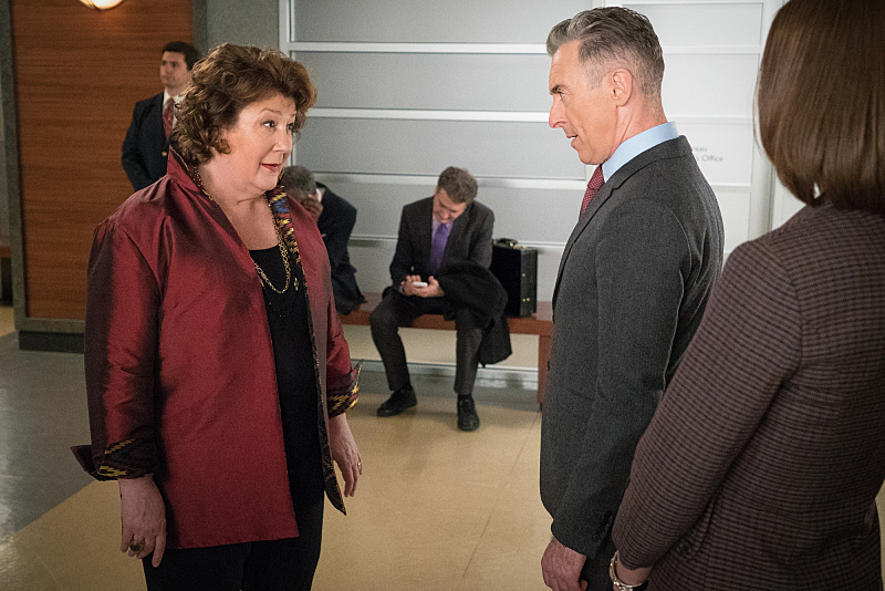 "Hearing" -- As the grand jury against Peter Florrick is assembled, with Assistant U.S. Attorney Connor Fox (Matthew Morrison) leading the proceedings, Alicia, Eli and Peter's lawyer, Mike Tascioni (Will Patton), attempt to discover what charges are being leveled against him. Also, Alicia and Jason attempt to spend a quiet weekend together but are interrupted by her meddling family, on THE GOOD WIFE, Sunday, March 6 (9:00-10:00 PM, ET/PT) on the CBS Television Network. Pictured Margo Martindale as Ruth Eastman and Alan Cumming as Eli Gold Photo David M. Russell é 2016 CBS BROADCASTING INC. ALL RIGHTS RESERVED.