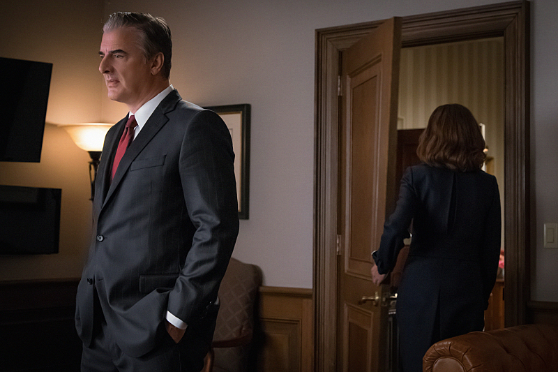 "Unmanned" -- Alicia and Diane defend the privacy rights of a therapist whose neighbor, represented by attorney Caitlyn D'Arcy (Anna Camp), flies a drone over his home office. Also, Assistant U.S. Attorney Connor Fox (Matthew Morrison) attempts to use Eli's daughter, Marissa, as leverage in the case against Peter, and the power struggle at Lockhart, Agos & Lee reaches a boiling point, on THE GOOD WIFE, Sunday, March 27 (9:00-10:00 PM, ET/PT) on the CBS Television Network. Pictured (L-R) Chris Noth as Peter Florrick and Julianna Margulies as Alicia Florrick Photo: Jeff Neumann/CBS é2016 CBS Broadcasting, Inc. All Rights Reserved