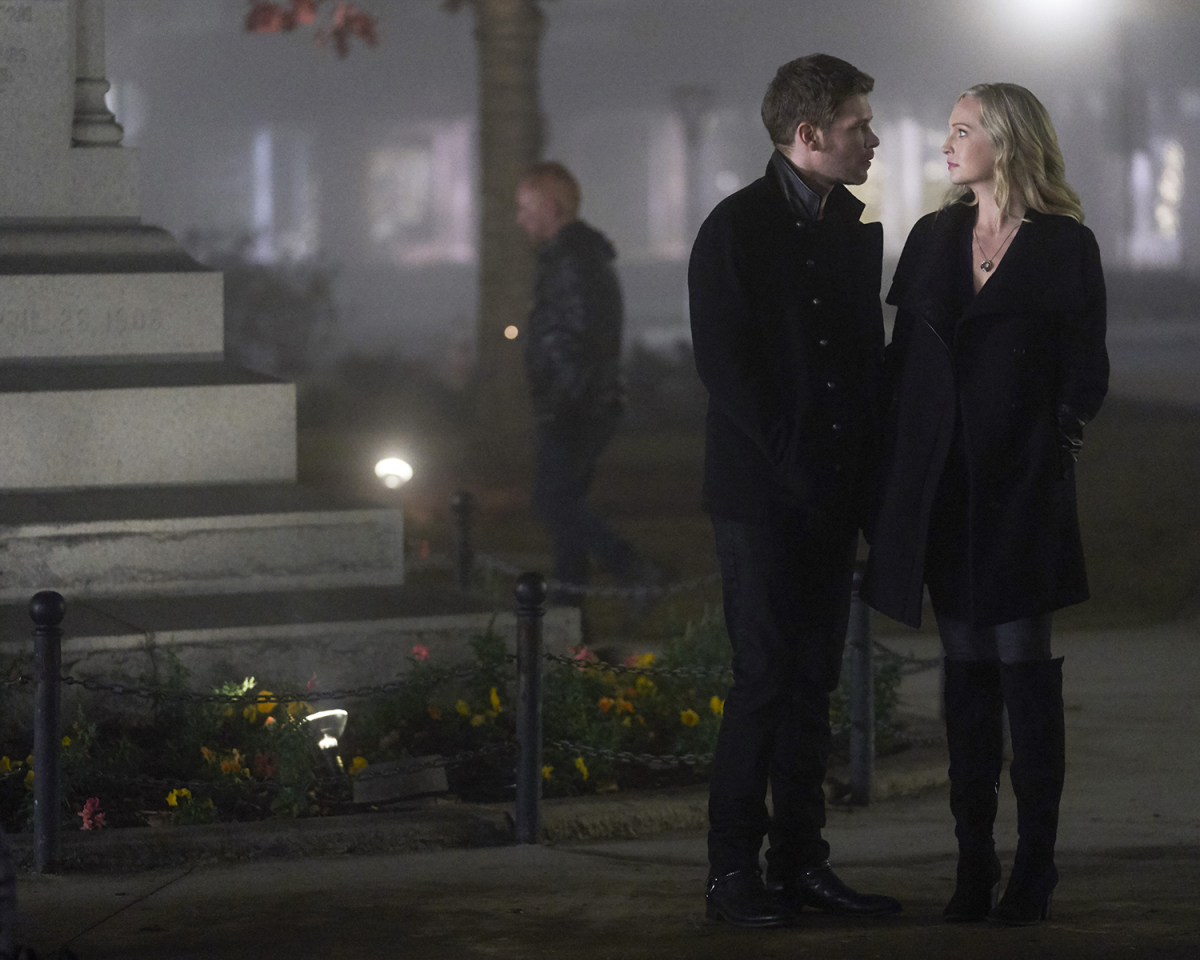 The Originals -- "'The Tale of Two Wolves" -- Image Number: OR512B_0348b2.jpg -- Pictured (L-R): Joseph Morgan as Klaus and Candice King as Caroline -- Photo: Bob Mahoney/The CW -- © 2018 The CW Network, LLC. All rights reserved.