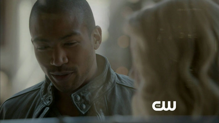 In this clip, it appears to be a conversation between Marcel (Charles Michael Davis) and Rebekah (Claire Holt) while the latter is out shopping on the market square or something like that.