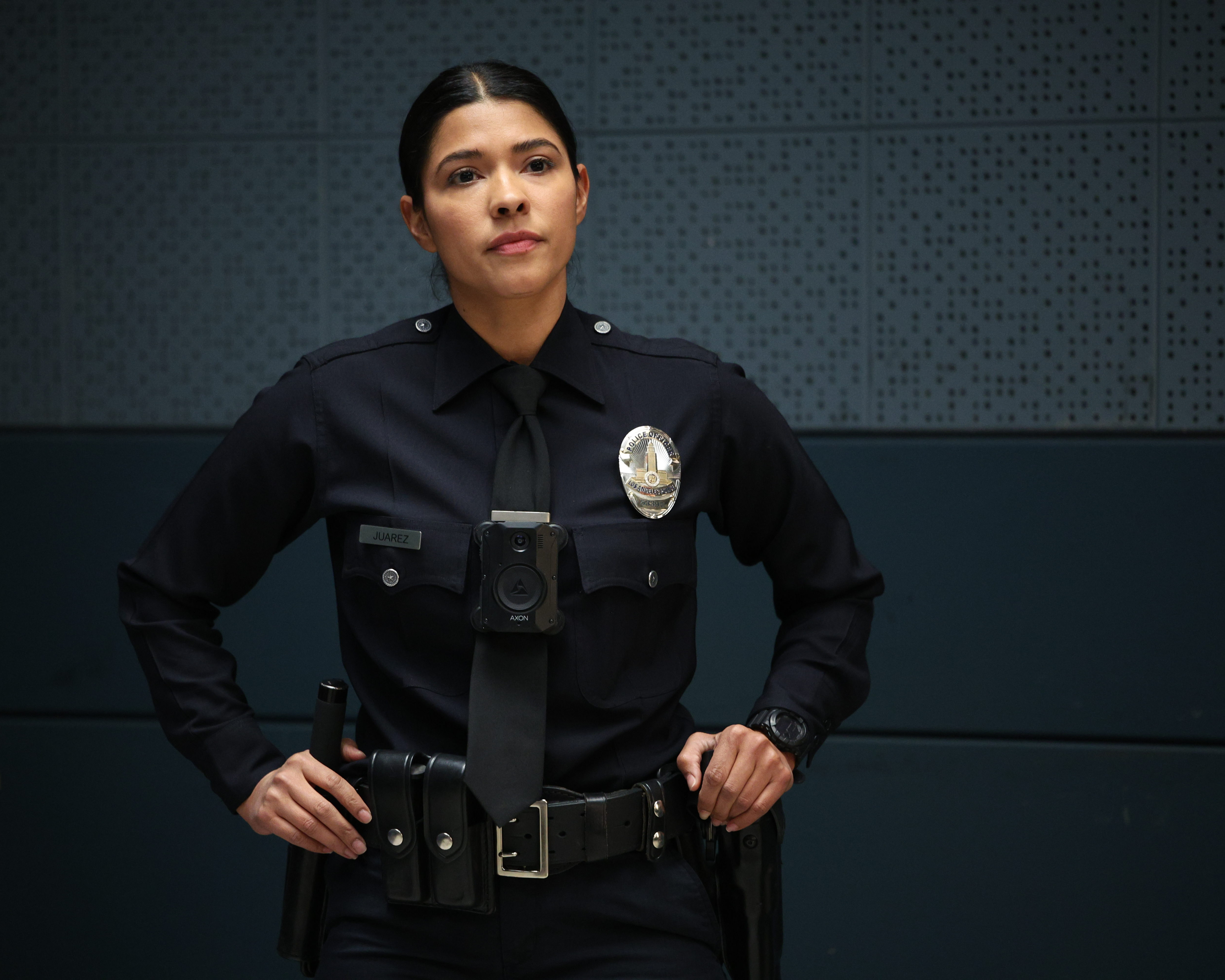 THE ROOKIE - “The Hammer” The team comes together to celebrate John and Bailey’s wedding; meanwhile, Celina discovers a discrepancy in her case, leading to a new discovery. Elsewhere, Lucy and Tim’s relationship is put to the test. TUESDAY, FEB. 27 (9:00-10:00 p.m. EST), on ABC. (Disney/Raymond Liu) LISSETH CHAVEZ