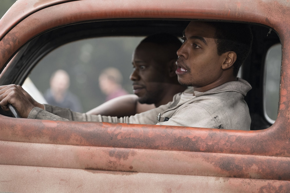 TIMELESS -- "Darlington" Episode 202 -- Pictured: (l-r) Malcolm Barrett as Rufus Carlin, Joseph Lee Anderson as Wendell Scott -- (Photo by: Justin Lubin/NBC)