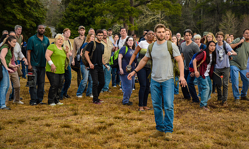 "Move On" -- Pictured (L-R) Max Ehrich as Hunter, Aisha Hinds as Carolyn Hill, Mike Vogel as Dale "Barbie" Barbara, Mackenzie Lintz Norrie Calvert-Hill, Eddie Cahill Sam Verdreaux, John Elvis as Ben Drake and Colin Ford as Joe McAlister star in UNDER THE DOME that begins its third season Thursday, June 25 on the CBS Television Network. Photo Brownie Harris/CBS©2015CBS Broadcasting Inc. All Rights Reserved.
